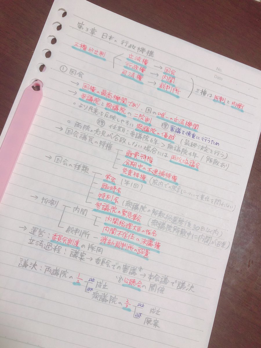 ①ノートと教科書を読んで、先生より分かりやすいノートを作ることを目標にして紙にまとめる